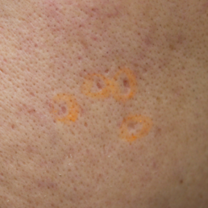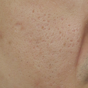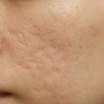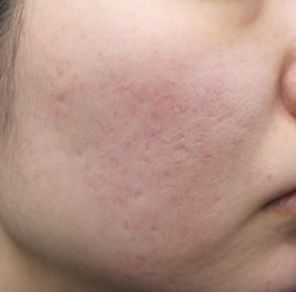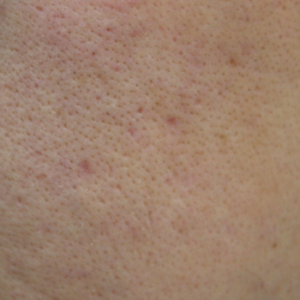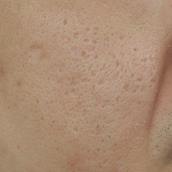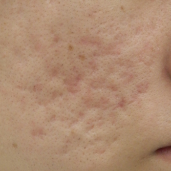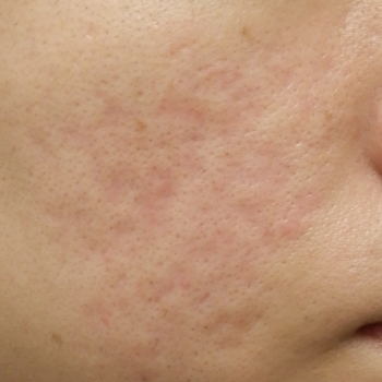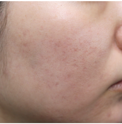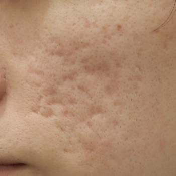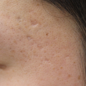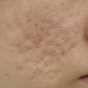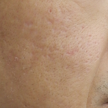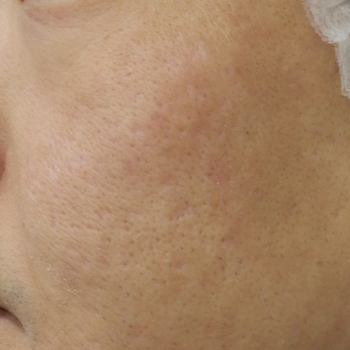 当院で花房式ニキビ跡治療 (サブシジョン+炭酸ガスレーザー)を行ってから1ヶ月後の症例です。