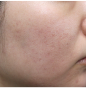 頬のニキビ跡が目立たなくなり、 改善されているのがお分かりいただけると思います。