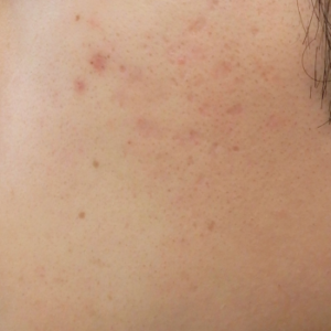 術前に見られた赤みのあるニキビが改善されているのがお分かりいただけるかと思います。
