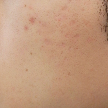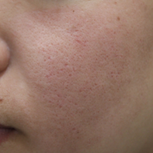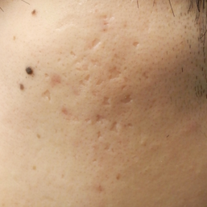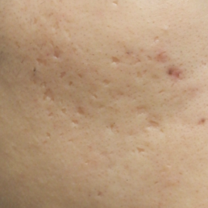 当院で花房式ニキビ跡治療 (サブシジョン+炭酸ガスレーザー)を行ってから1ヶ月後の症例です。