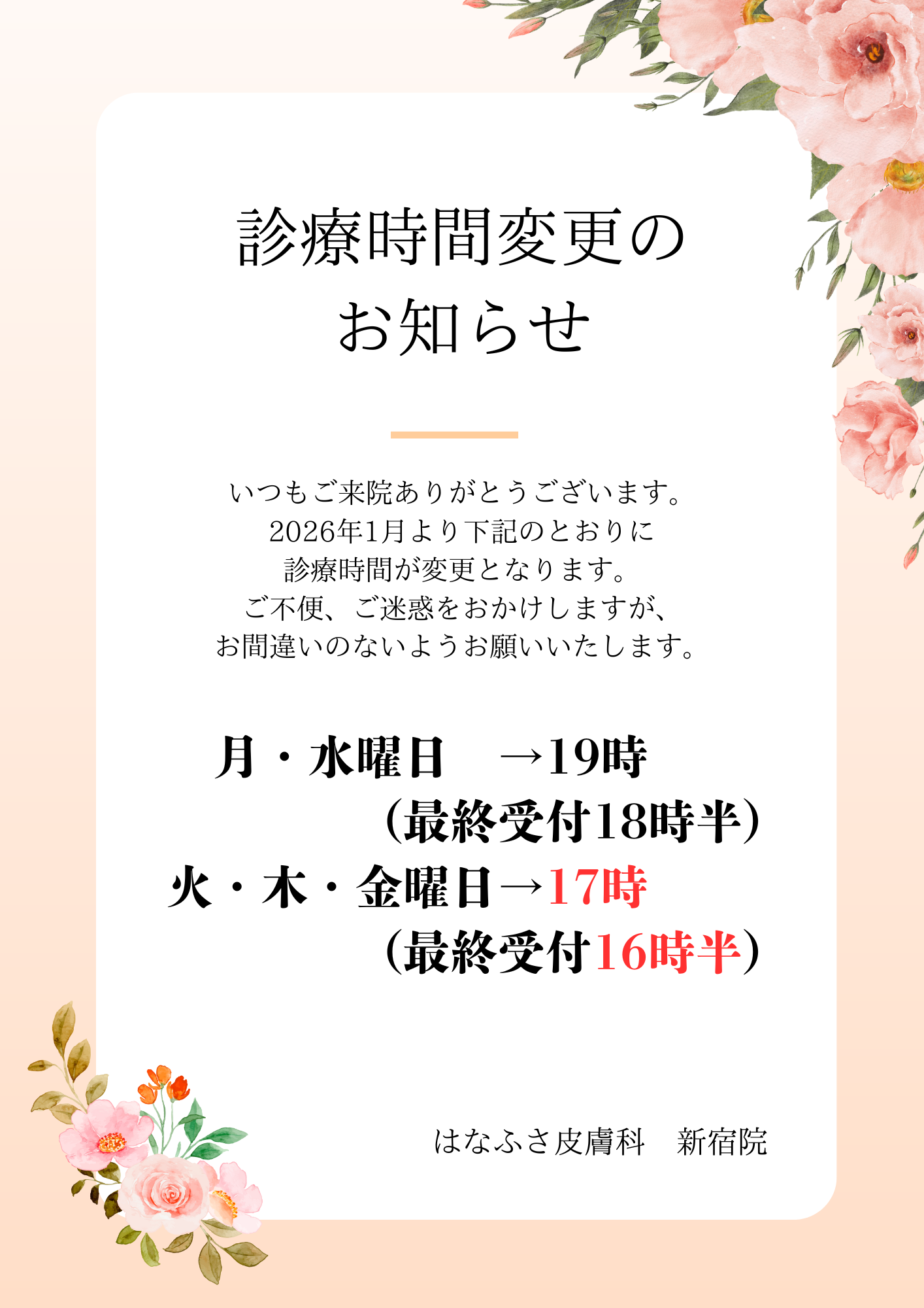いつも国分寺駅前はなふさ皮膚科をご愛顧いただき、誠にありがとうございます。