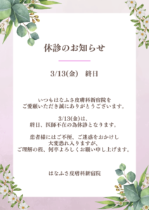 いつもはなふさ皮膚科札幌院をご愛顧いただき、誠にありがとうございます。